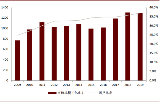 图表:2019年国产化率约36%,趋势确定空间广阔