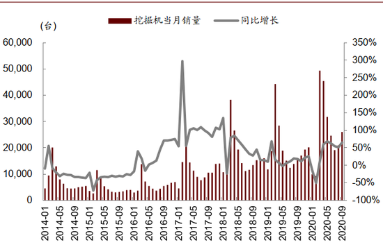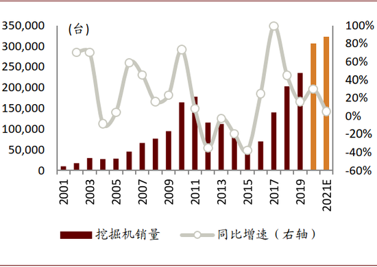 图表:预计2020/2021年挖机销量同比增速30%/5%