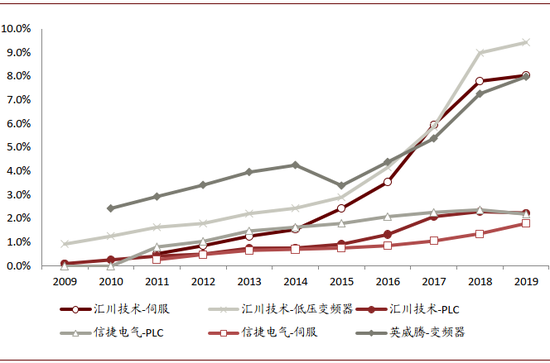 图表:汇川技术、信捷电气等国产细分龙头份额提升