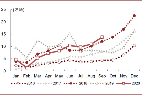 图表:国内新能源汽车月度销量