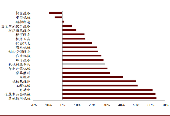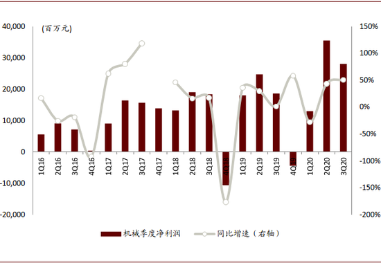 图表:3Q20 A股机械行业净利润同比增速