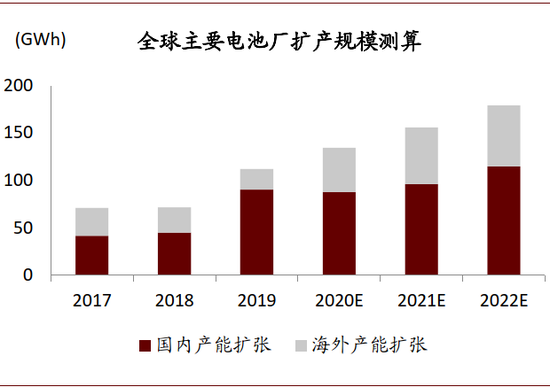 图表:全球主要电池厂扩产规模测算