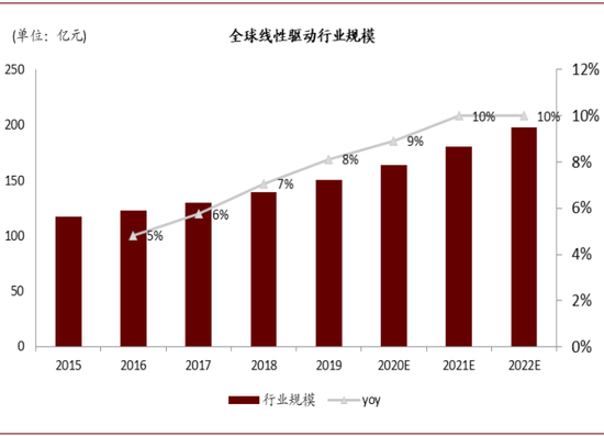 图表: 2020年全球线性驱动市场规模164亿元
