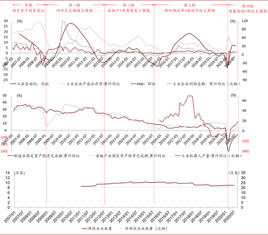 资料来源:万得资讯,工控网,IFR,中金公司研究部(注:PMI:环比=PMI-50%;供改行业包括煤炭开采、黑色矿开采、有色矿开采、非金属矿开采、造纸、石化炼焦、化工、化纤、黑色冶炼、有色冶炼、非金属矿物制品等11个行业,而非供改行业为上述11个行业以外的其他30个行业)