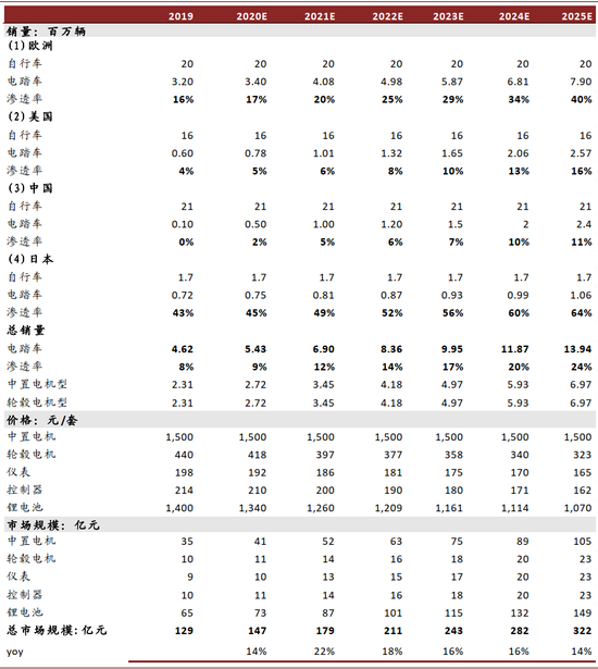 图表:电踏车电机及配套系统市场空间测算