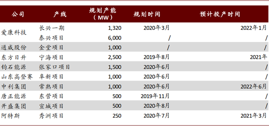 图表:部分HJT产能规划梳理(不完全统计)