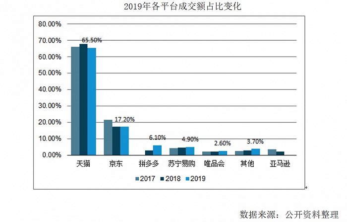 而拼多多作为最晚加入电商大战却强势崛起的平台,去年双十一销售额为250亿,占比为6.1%,而苏宁易购占比4.9%。另外,还有唯品会、蘑菇街等电商储备力量次之,不排除在未来他们会加盟到双十一晚会之战中。