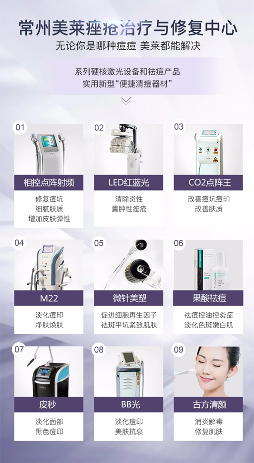 常州美莱痤疮治疗与修复中心自2019年7月成立起,就十分关注研究祛痘的理想方案:不仅要能祛痘,还要解决对颜值破坏更大的痘坑、痘印问题;不仅要有效,还要缩短痘痘治疗周期,标本兼治,防止复发;不仅要养肤,还不用担心皮肤产生耐药性。常州美莱痤疮治疗与修复中心深知:要改善痘痘产生的“土壤”环境,从肤质上根本改变痘痘肌,并保证2年“质保”不复发。