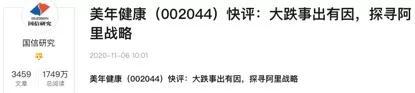 这次的实名举报源于11月初美年健康(002044.SZ)的股价跳水,而国信证券11月6日发布研报《美年健康:大跌事出有因,探寻阿里战略(重大事件快评)》,并作出有关“爱康国宾资产注入”的猜测。