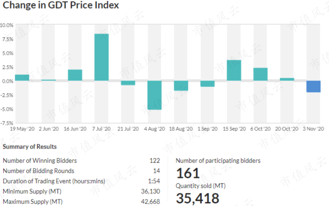 GDT平台实时交易数据形成的GDT价格指数,已成为全球用以衡量乳制品价格最重要的参数,基本可以被当成全球乳制品市场现货、期货以及供需关系的风向标。
