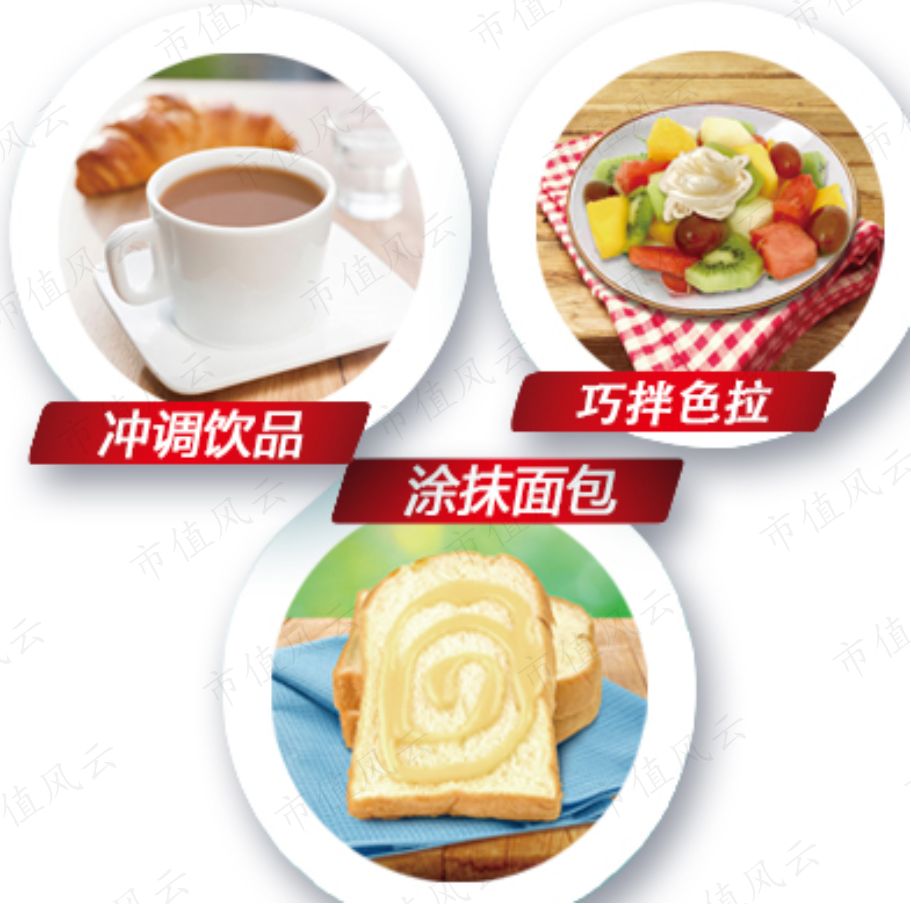 至于剩下的甜奶酱、奶酪棒、稀奶油等产品,用途基本大同小异,要么是调味品,要么就是可以直接吃的乳制品零食,风云君就不细讲了。
