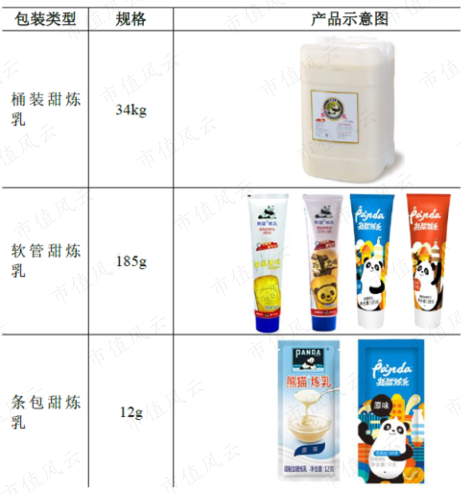 熊猫乳品的产品具体包括炼乳、奶油、奶酪三类,炼乳又可进一步分为甜炼乳、淡炼乳以及甜奶酱。