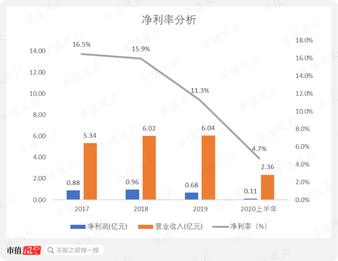 净利润方面,熊猫乳品的净利率从2017年的16.5%一路抛物线般、加速下滑至2020年上半年的4.7%。即便不考虑今年上半年这种极端特殊的情况,公司的盈利能力也是越来越不行。净利润的绝对金额在2019年也遭遇下滑,0.68亿元的规模甚至比2017年的0.88亿元还要少。