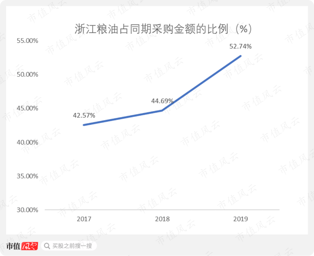 2017-2019年,浙江粮油占同期采购金额的比例从42.57%上升至52.74%,一直是熊猫乳品的第一大供应商。