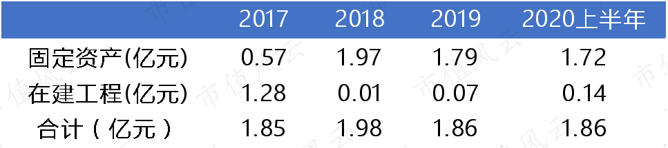 截至2020年上半年,固定资产和在建工程合计达到1.86亿元,占总资产的比例为27%。