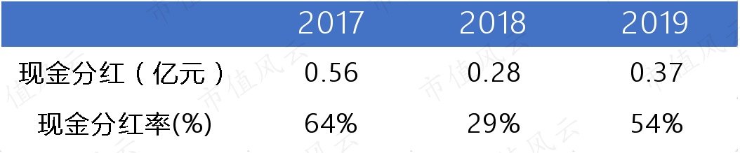 虽然净利润和现金流表现一般,但是从2017年起,熊猫乳品就一直有现金分红,2019年的净利润明显不如2018年,但是现金分红还是从2018年的0.28亿元增长至2019年的0.37亿元,同期现金分红率也从29%上升至54%。