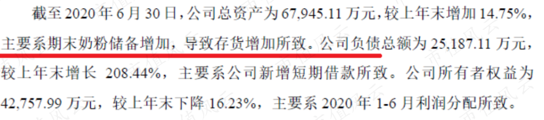 具体来看其实就是熊猫乳品借钱去购买奶粉了,奶粉储备的增加是导致存货增加的最主要原因。