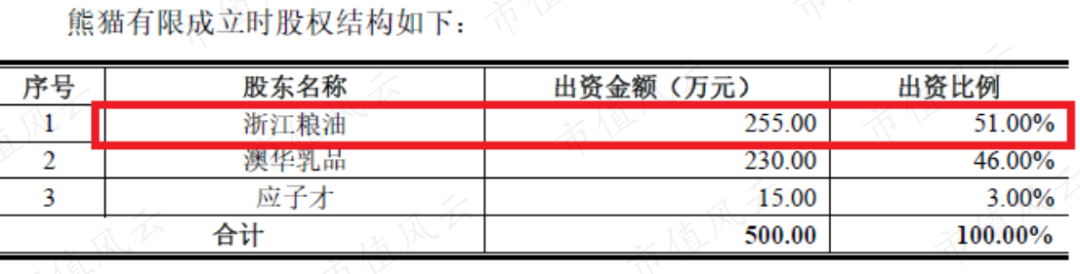 公开资料显示,熊猫乳品刚成立的时候,就是一家中外混合所有制企业,国有股东正好就是浙江粮油,其持有熊猫乳品51%的股权。