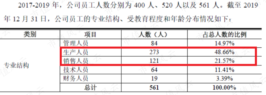截至2019年年末,熊猫乳品共有561名员工,其中生产人员占比接近50%,还有20%的人员是搞销售的,生产和销售一般是食品和饮料企业的最重要的两个环节,熊猫乳品的员工结构基本符合这个特点。