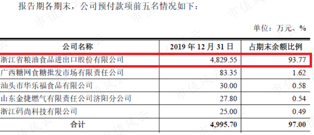 2019年,公司最大的预付款项对象,是浙江粮油,占当期总预付款项的比例高达93.77%。不过这个可以理解,毕竟浙江粮油是省属国企,在产业链的话语权上,要强过熊猫乳品,所以熊猫乳品只能先交钱,后拿货。