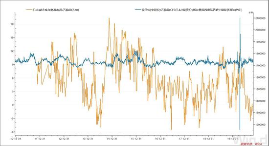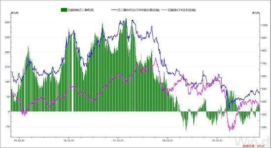 从乙二醇生产工艺结构来看,乙二醇原料成本重点在于石脑油价格,进一步可考虑原油价格。当前石脑油与原油现货价格比值处于相对低位,同时石脑油库存也处于接近历史低位,并且当前原油价格也处于历史低值附近,因此在原油、石脑油和乙二醇后市价格波动中,受消息面刺激时上涨概率要大于下跌概率。