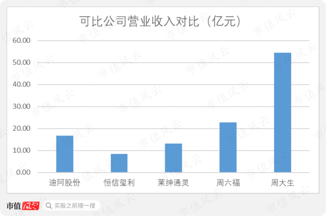 放在同行业来看,迪阿股份的收入规模大概居于行业中游。