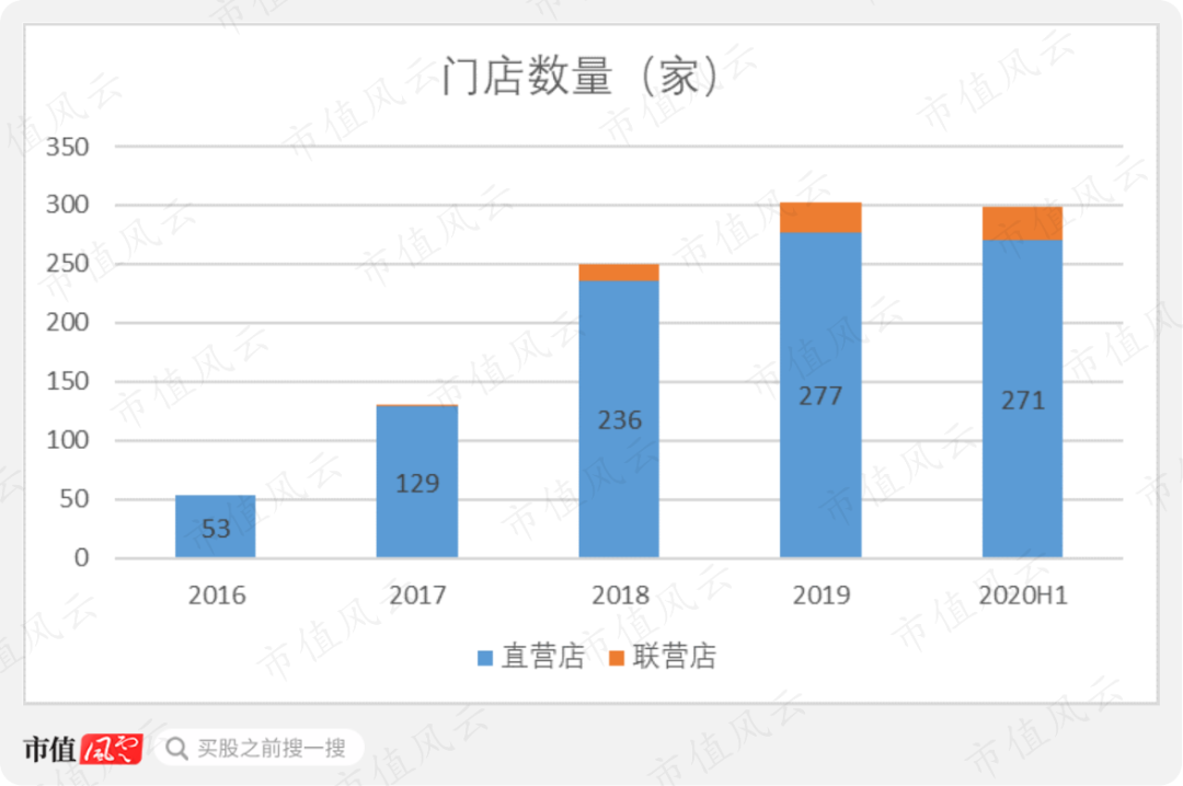 截至2019年末,迪阿股份共拥有277家直营店,较2016年翻了两番都不止。