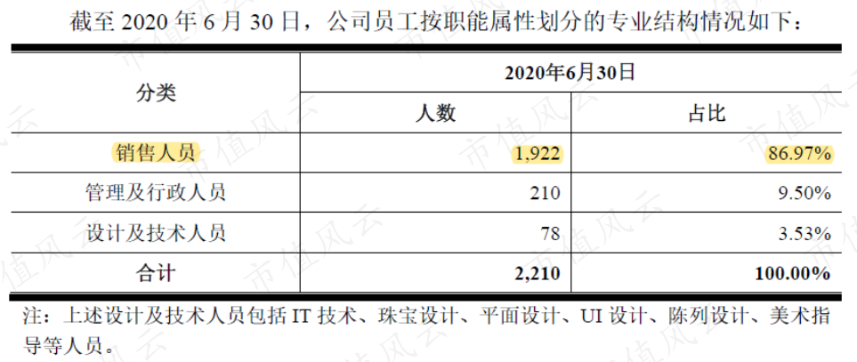 而包括珠宝设计、平面设计、陈列设计等设计人员,连同技术人员在内,只有78人,尚不到百人规模。