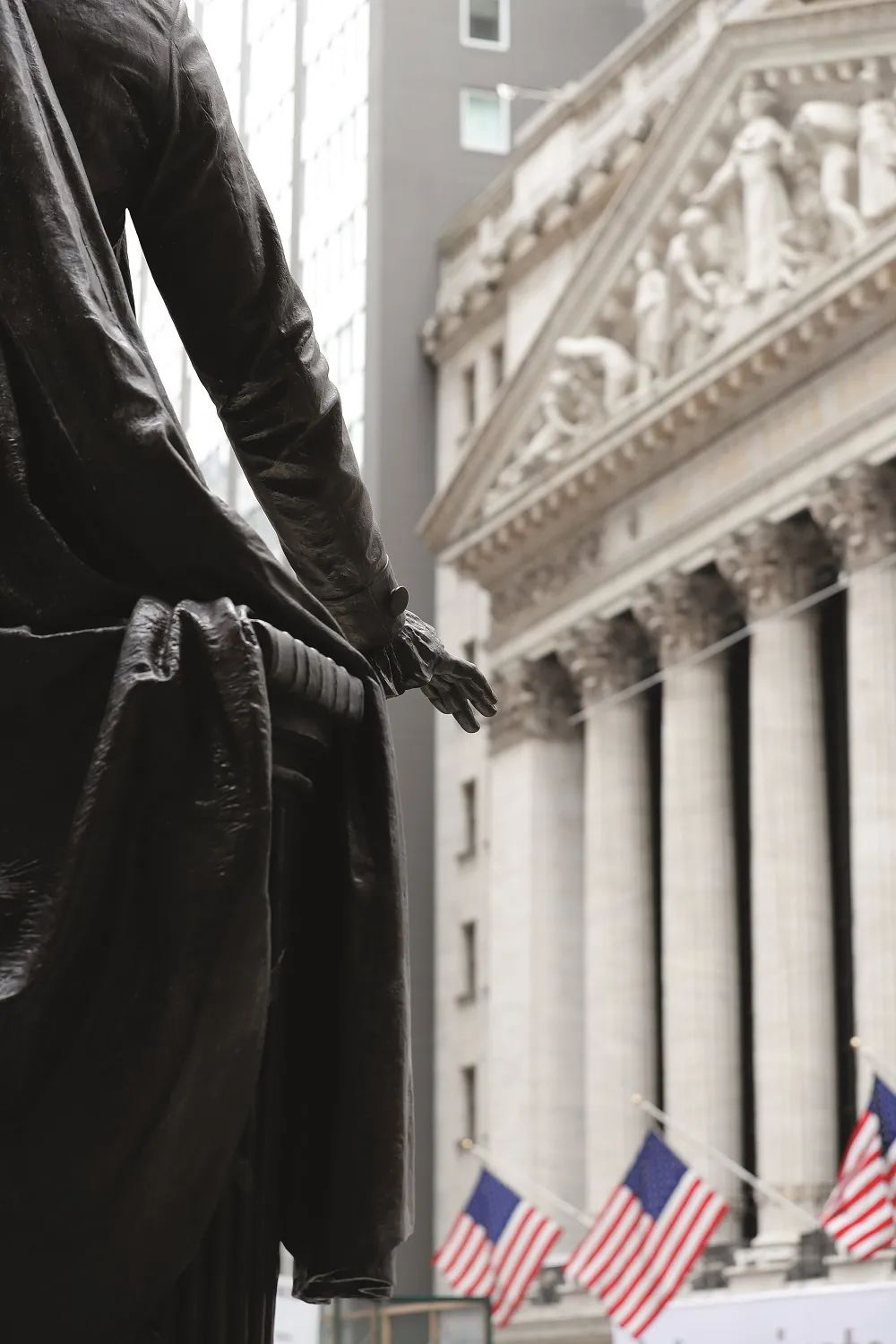 美国纽约华尔街的雕塑和纽约证券交易所。摄影/本刊记者 廖攀