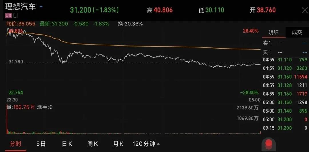 受上述消息影响,理想汽车盘前股价大涨超30%,开盘后股价最高涨幅也逼近27%,最高股价一度达到40.806美元,创新高。不过,之后的剧情急转直下。因受做空机构香橼资本做空中国造车新势力的影响,理想汽车最终收跌1.83%,报31.2美元,总市值为260.9亿美元。