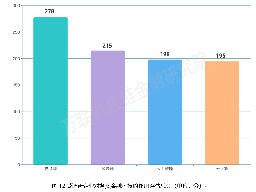 近些年来,随着科技的发展,以物联网、区块链技术为代表的金融科技的力量不断凸显,在此前万联网“疫情下的供应链金融在线论坛”上发布的《疫情下企业融资与供应链金融调研报告》中,据受调研企业对物联网、区块链、人工智能、云计算等四类金融科技在此前疫情时期所产生的实际作用的评分,有35%-42%的企业认为在当时情况下金融科技起到的作用很大,可见金融科技受到一定程度的认可。此外,万联网记者还注意到,在受调研企业对四类金融科技评分中,区块链的分数并不低。
