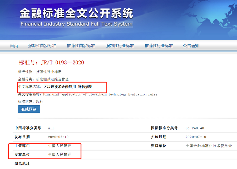 万联网记者注意到,根据全国金融标准化技术委员会官网上公布的《区块链技术金融应用评估规则》相关信息显示,《评估规则》属于推荐性行业标准,已于7月10日已正式发布。