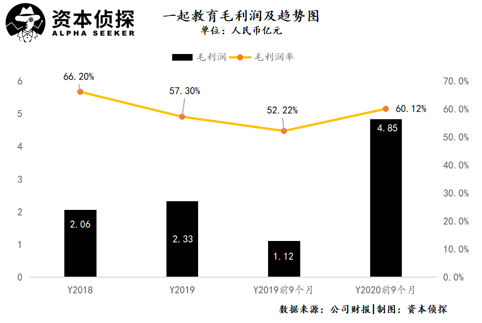 毛利润方面,一起教育2018年、2019年、2020年前9个月毛利润分别为2.06亿、2.33亿、4.85亿元人民币。