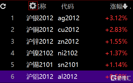 沪铜主力合约早盘开盘几分钟便大幅拉升3%以上。并且多种金属期货飘红,沪银3.12%、沪锌涨幅1.55%、沪镍1.4%、沪锡1.14%等。