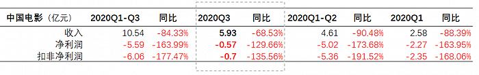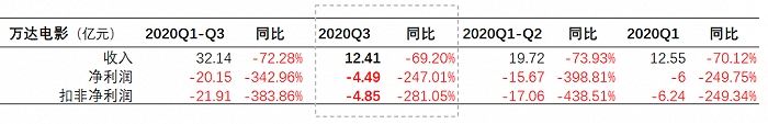 受疫情影响,公司下属的国内影城1月23日开始停业,海外的影城也在3月底暂停营业。由于影院停业期间,仍有折旧、租金、员工薪酬等支出项,万达前三季度亏损高达20.15亿,净利润同比下滑超3倍。