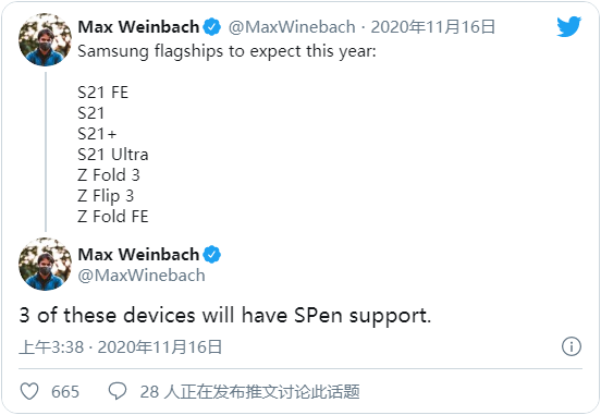 早前有传闻称,三星可能正在考虑为 Galaxy S21 系列引入对 S Pen 手写笔的支持,同时放弃秋季的 GalaxyNote 21 产品线,取而代之的是面向未来的 Fold 系列折叠屏智能机产品线。最新消息是,知名爆料人 Max Weinbach 在 Twitter 上分享了 2021 年度的三星旗舰产品清单,GalaxyNote 21 系列遗憾缺席了。