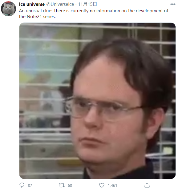 与此同时,@UniversalIce 也披露了一个不寻常的消息,指出没有线索指向三星正在开发 GalaxyNote 21 系列智能机。