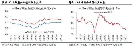 信用债市场,企业债到期收益率小幅上升。11月6日-11月13日,5年期AAA级企业债到期收益率上升12bp至4.07%,AA级企业债到期收益率上升13bp至4.63%AA-AAA利差从55bp上升到56bp。