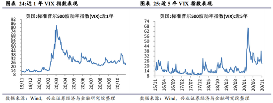 全球市场恐慌程度下行幅度较大。11月6日-11月13日,VIX指数周收盘为23.10,周下行7.08%。