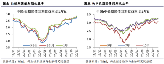 11月10日“20永煤SCP003”未能按期足额偿付本息,构成实质性违约。由此市场对流动性担忧加大,11月11日到13日央行加大逆回购净投放力度稳定市场资金面,11日、12日和13日逆回购操作分别净投放300亿元、900亿元和1600亿元。16日1年期MLF净投放8000亿元。整体来看货币市场、国债市场和信用债市场利率均小幅上行,货币市场和信用债市场利率上行幅度相对较大。具体市场影响请关注策略报告《信用违约历史演进与股票市场表现(兴证策略王德伦团队20201113)》和《持久战:信用违约对股市影响三阶段——A股策略周报(兴证策略王德伦团队20201115)》。