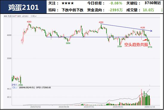 当前市场的主要矛盾为蛋鸡存栏下行不及预期,同时随着天气转冷产蛋率上升,但需求方面暂无明显利好因素,且替代品的价格也不利于鸡蛋。盘面看,鸡蛋:空头结构明显,关注下方空间能否再次打开,空单建议持有跟随。