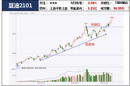 2.盘面:多头趋势强劲,今日再次冲击新高。