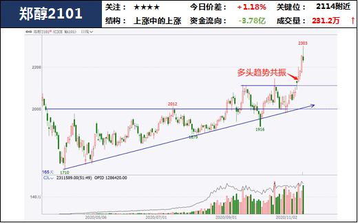 受疫苗研发取得重大进展消息刺激,宏观氛围良好,叠加甲醇供需面回暖,推动甲醇价格上涨,且西北新价大幅调涨后维持停售状态,上游装置恢复不及预期,加之下游需求强劲,集中供暖开始后需求还将进一步增加,短期上下游联合推动带动下预计各内地市场延续偏强趋势,但限气涨价政策的出台也可能对价格上涨形成阻碍。盘面看,甲醇基差走强,期货盘面多头结构明显,今日冲高回落,多头趋势仍在,仍建议试多跟随。