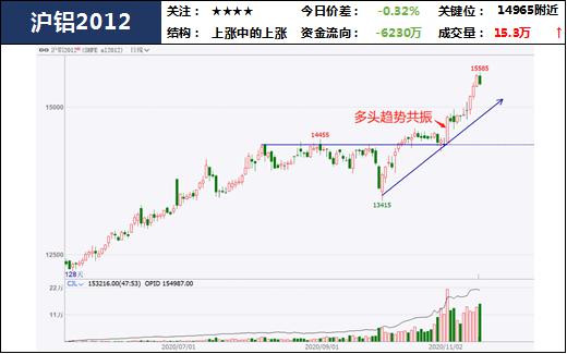 Trump上诉多地受阻,Biden胜选令市场期待经济刺激计划,加上辉瑞疫苗研发超预期,令铜价受益大涨。此外铜矿供应偏紧,下游消费也存在一定韧性,支持铜价。今日量价齐升,触发多头趋势共振信号,多头趋势明显。多单可持有,新仓建议试多跟随。