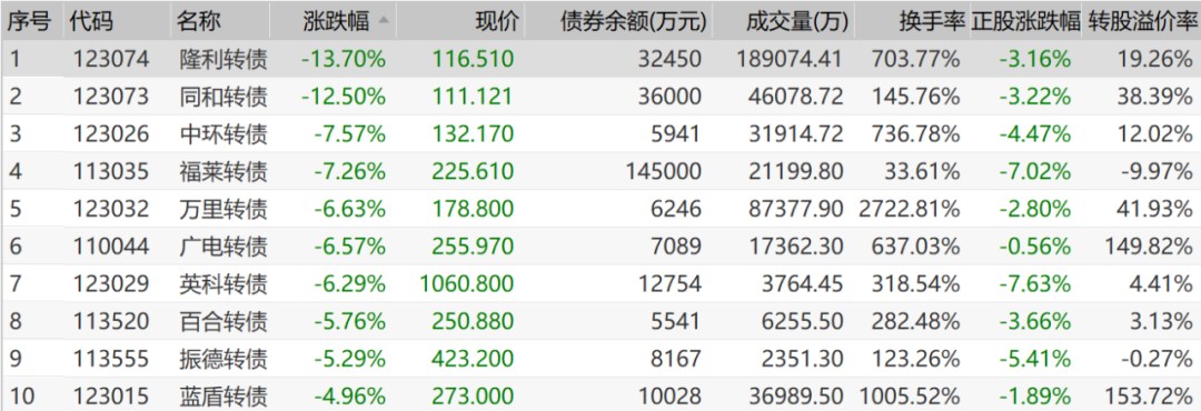 事实上,11月4日以来上市就“熔断”的转债中,有3只转债上市首日收盘时的转股溢价率超过30%。16日上市开盘涨30%的隆利转债、同和转债,17日也领跌两市。