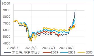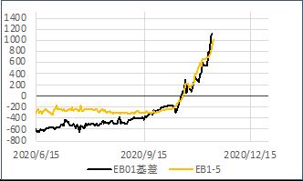 01合约基差继续大幅走强至1115,较上周增强565。EB1-5价差走强至1000,较上周增强349。