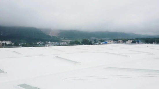 该项目屋面采用了单层屋面系统——TPO防水卷材+岩棉保温层+聚酯隔汽膜+压型钢底板的做法,防水层采用东方雨虹(ORIENTAL YUHONG)单层增强型TPO防水卷材外露使用,具有超长的耐老化年限和优异的耐候性能,其独特的可焊接施工工艺可确保屋面卷材接缝严密可靠,不产生任何渗漏。