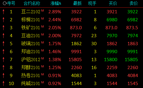 热点栏目11月19日,油脂油料夜盘大涨,豆二涨近3%,棕榈油、豆油涨逾2%;黑色系走升,铁矿石涨逾2%。