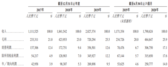 反映在财务业绩上,融创服务的收入由2017年的11.12亿元增长至2018年的18.42亿元,并进一步增长至2019年的28.27亿元,两年间的年复合增长率为59.5%;利润增长更胜一筹,以150.7%的年复合增长率从2017年的4300万元增长至2019年的2.70亿元,足足增加5.27倍。疫情之下增势不改,上半年融创服务实现营收17.91亿元、实现利润2.51亿元,分别同比增长52.9%及367.6%。