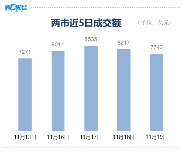 11月19日,三大股指小幅低开后震荡走高,截至收盘,沪指涨0.47%,报收3363点;深成指涨0.87%,报收13777点;创业板指涨0.93%,报收2645点。盘面上,国防军工板块强势,晨曦航空、江龙船艇涨幅达20%;自行车、猪肉、白色家电等涨幅居前;有机硅、有色、煤炭、钢铁等跌幅居前。